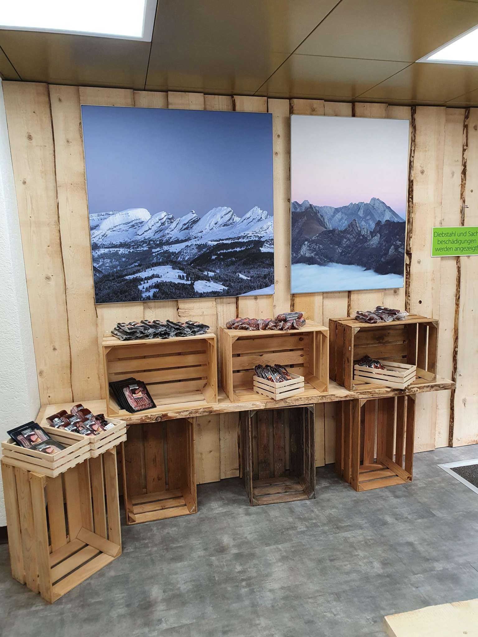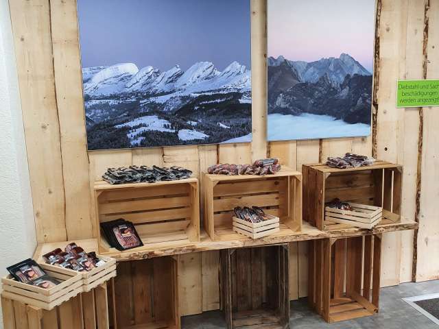 Direkt an der Hauptstrasse Nesslau–Wildhaus in der alten Metzg im Dorf Stein SG. Da gibt’s Leckerbissen der Metzgerei Metzger und Toggenburger Spezialitäten von der Bauernfrau bis zum Käser. Frisch- und Trockenfleisch, Käse, Milch, Jogurt aus der Region, Geschenksartikel, gedörrtes Obst direkt vom Bauer, Brot und süsse vom Beck und allerlei gutes aus der Region für Proviant auf die Schneeschuhtour, auf den Grill und Herd in der Ferienwohnung oder einfach für zuhause.