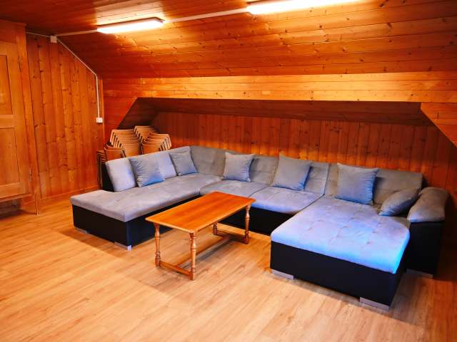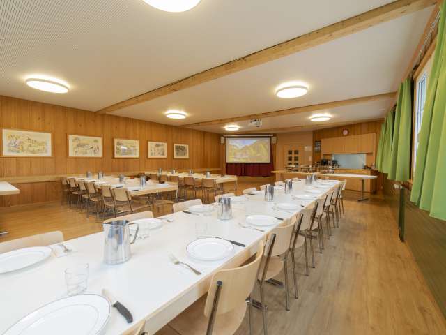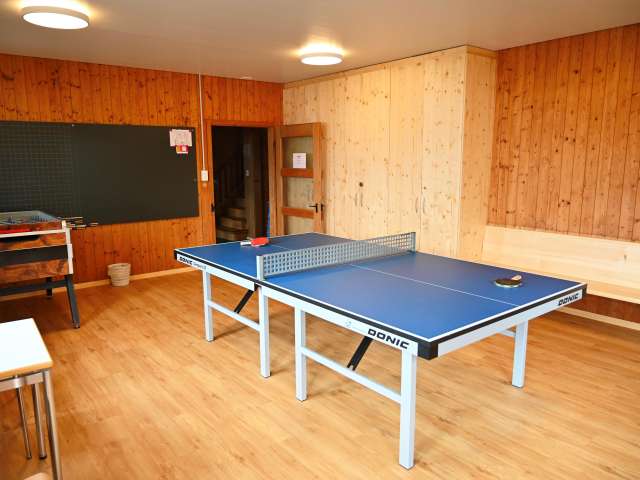 Ideal für Schulklassen, Geburtstagsfest, Hochzeit, Lehrlingslager etc. Nebst gratis Internetanschluss stehen Ihnen ebenfalls Beamer, Leinwand, Musikanlage, ein hauseigener Fussballplatz, Volleyballfeld, Ping-Pong Tisch, Töggelikasten und eine Feuerstelle zur Verfügung. An einer Privatstrasse sind Sie frei vom Verkehr, jedoch sind es nur 100 Meter bis zur Skibushaltestelle.