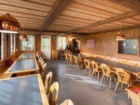 Bis zu 90 Personen finden hier auf insgesamt 21 Zimmern einen gemütlichen Platz zum träumen. Neben dem grossen Speisesaal stehen Ihnen 2 weitere Aufenthaltsräume mit Tischfussball, Speedhockey und Tischtennis zur Verfügung.